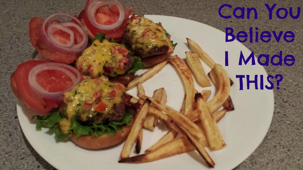 We kicked off our date night in by making our gourmet meal together. We playfully enjoyed each other’s company while following the step by step instructions included with the ingredients to make pimiento cheeseburger sliders with parsnip fries.